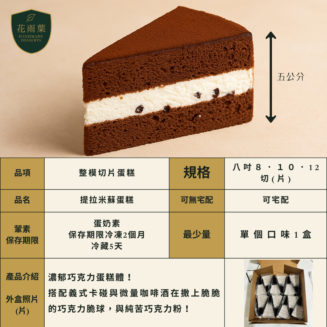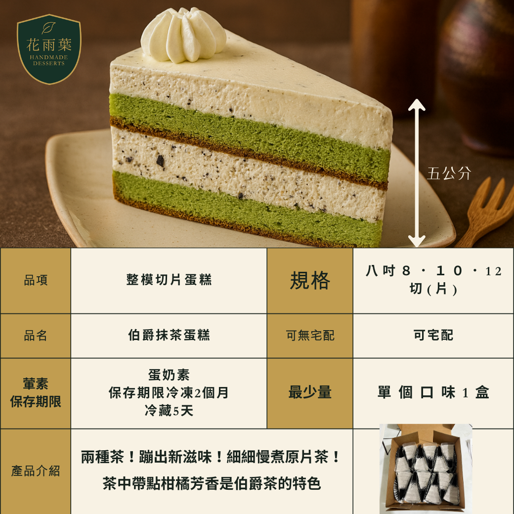 切片蛋糕(卡士達,提拉,抹茶伯爵,黑森林,花雨葉|專業蛋糕西點代工