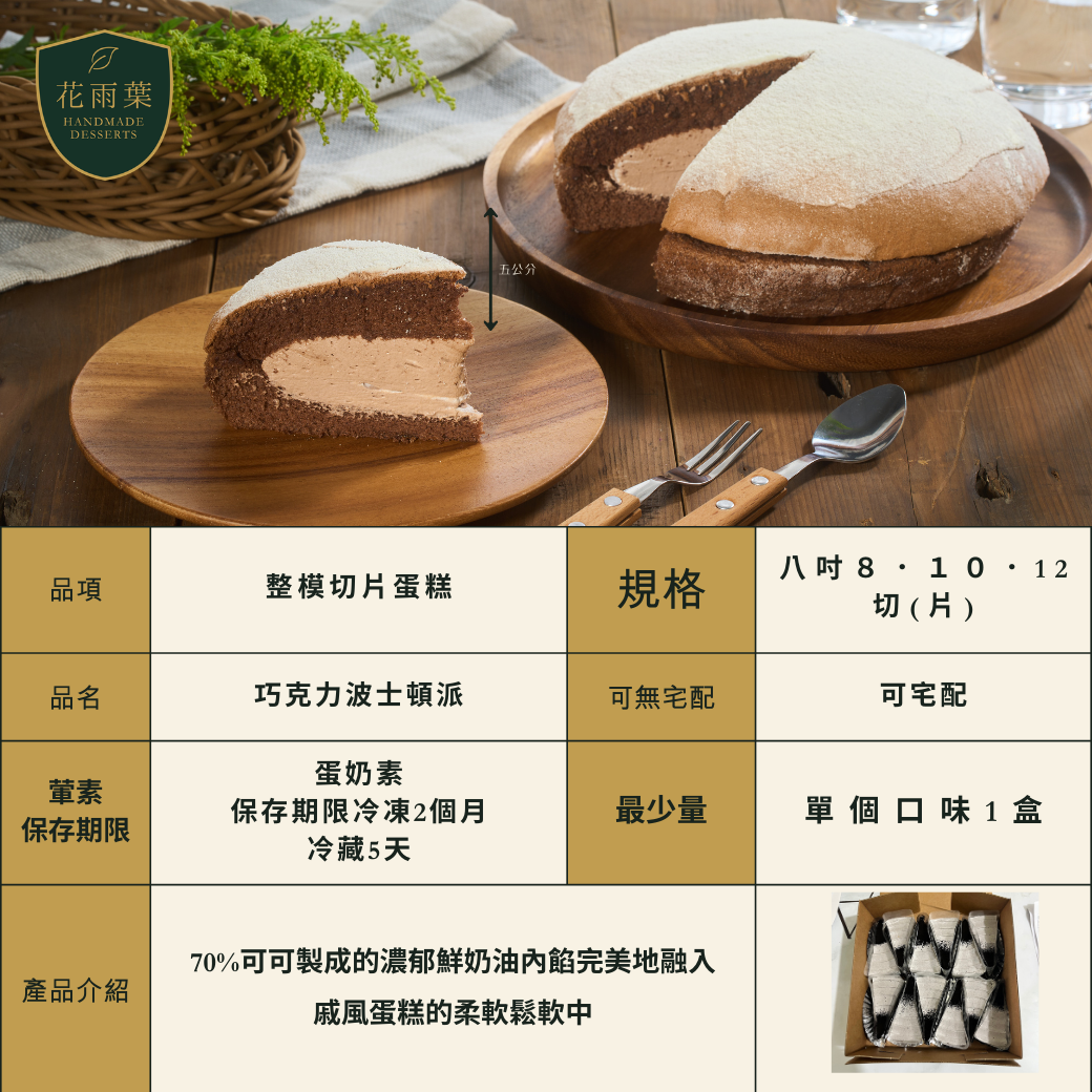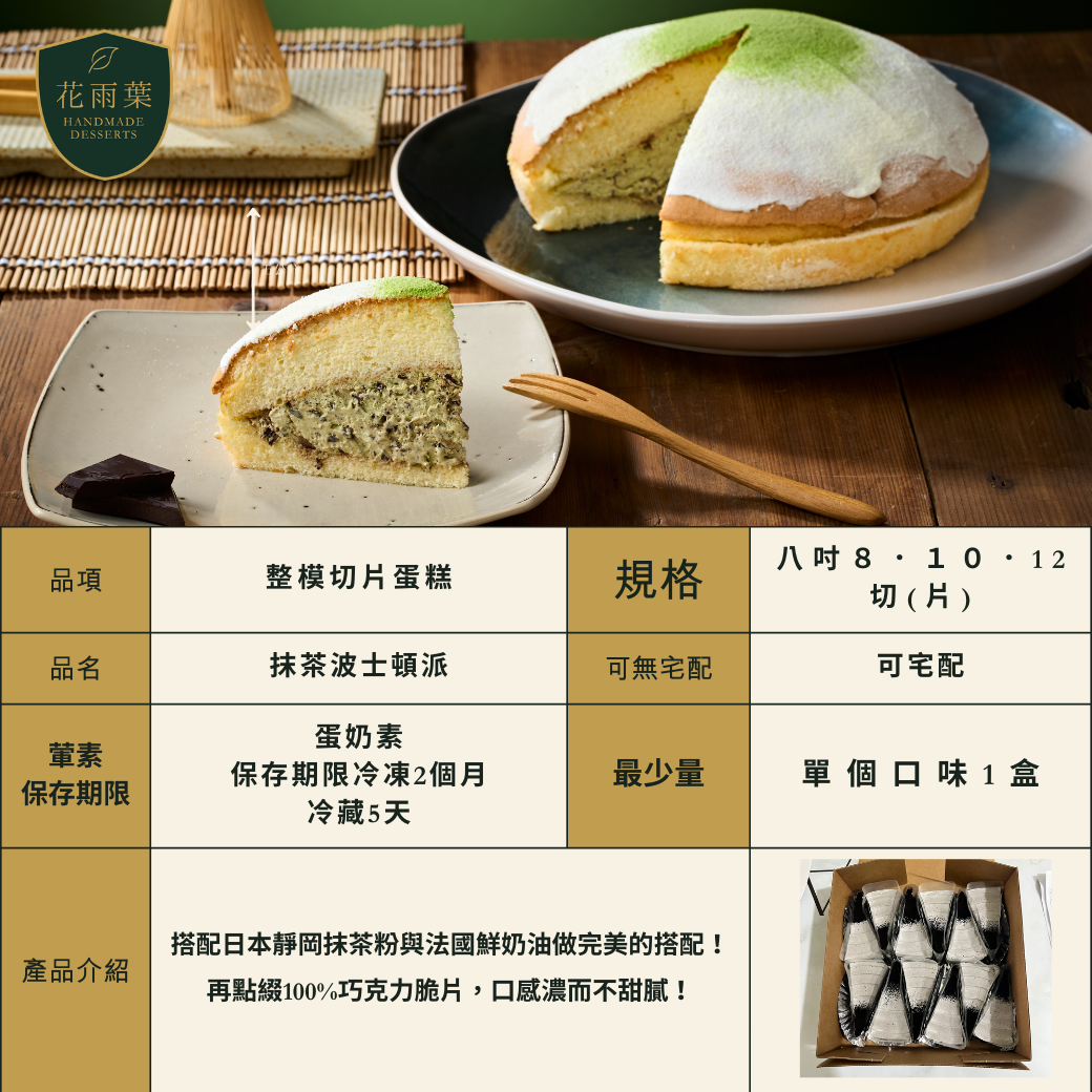 波士頓派切片(原味,抹茶,巧克力),花雨葉|專業蛋糕西點代工